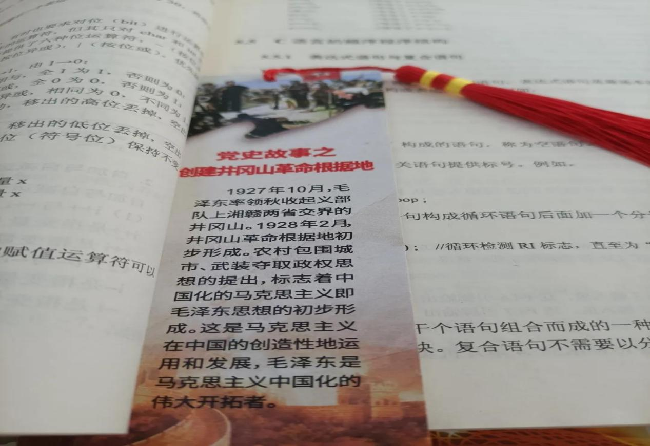 誠信自助超市旁的紅色書籍共享書架也是學院開展黨史學習教育的重要陣地。共享書架上的黨史書籍經過精心挑選,一一陳列,同學們經過書架,可隨時自助借閱。除了紅色書籍,書架上還展出畢業班同學捐贈的各類專業書籍,這些書籍每一本都夾著一枚書簽,書簽上是畢業班學生寫給學弟學妹們的黨史知識、黨史故事。學院希望通過書籍的傳播,將黨的歷史、黨的光榮傳統在一屆屆學生中傳遞下去。