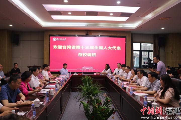中新網(wǎng)福建頻道6月5日電(周麗麗 康哲力)6月4日,以中共中央候補(bǔ)委員、全國(guó)人大常委會(huì)委員,全國(guó)臺(tái)聯(lián)黨組書(shū)記、會(huì)長(zhǎng)黃志賢為團(tuán)長(zhǎng)的第十三屆全國(guó)人大臺(tái)灣省代表團(tuán)一行蒞臨福建漳州,調(diào)研閩南師范大學(xué)在推動(dòng)兩岸融合發(fā)展等方面的做法與經(jīng)驗(yàn)。調(diào)研座談會(huì)在科技信息樓會(huì)議室舉行。國(guó)務(wù)院臺(tái)辦、全國(guó)臺(tái)聯(lián)、福建省人大、福建省臺(tái)聯(lián)、漳州市人大、漳州市臺(tái)聯(lián)等有關(guān)部門(mén)領(lǐng)導(dǎo),閩南師范大學(xué)黨委書(shū)記吳彬鏹、校長(zhǎng)李順興,學(xué)校相關(guān)部門(mén)負(fù)責(zé)人及臺(tái)籍教師代表參加座談會(huì)。會(huì)議由吳彬鏹主持。
