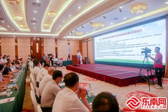 漳州市食安辦主任、市市場(chǎng)監(jiān)管局局長(zhǎng)朱東風(fēng)代表市食安委致辭,總結(jié)近年食品安全概況,介紹了食品安全宣傳月系列活動(dòng)安排。隨后,大閩食品(漳州)有限公司總經(jīng)理王軍作為企業(yè)代表介紹落實(shí)主體責(zé)任典型經(jīng)驗(yàn),來(lái)自食品生產(chǎn)、流通、餐飲的100名企業(yè)代表進(jìn)行集體誠(chéng)信守法和反食品浪費(fèi)承諾。隨后,副市長(zhǎng)吳衛(wèi)紅宣布宣傳月活動(dòng)啟動(dòng)。