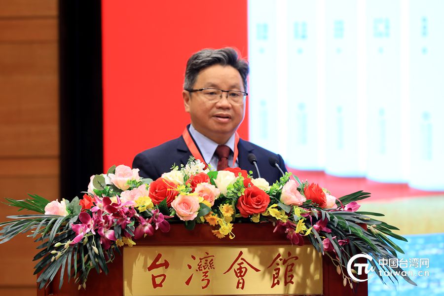 中華全國(guó)臺(tái)灣同胞聯(lián)誼會(huì)副會(huì)長(zhǎng)楊毅周在《臺(tái)灣通史》(六卷本)全國(guó)首發(fā)式上致辭。(中國(guó)臺(tái)灣網(wǎng) 符海川 攝)