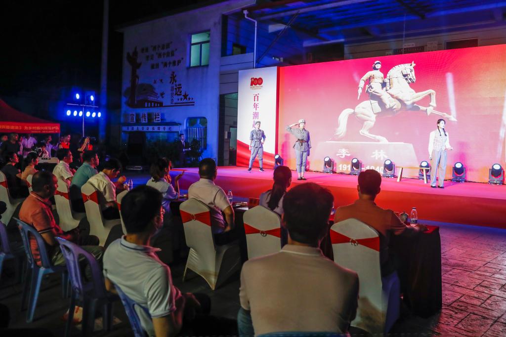 晚會在節奏歡快、表演詼諧的動態非遺表演——浦南古儺中拉開序幕。舞臺劇《開漳逸事》講述了開漳圣王逆流而上化煙瘴之地為海濱鄒魯,化鴻溝天塹為康莊大道的故事,慷慨激昂、催人奮進。歌曲《燈火里的中國》、朗誦《美麗中國》、舞蹈《綻放》等節目,以嘹亮的歌聲、激昂的朗誦、優美的舞姿展現了在黨旗指引下的青年,“以吾輩之青春,護衛盛世之中華”的堅定決心。舞臺劇《李林》情景再現了抗日女英雄李林同志的革命事跡,生動表達了革命先烈不怕犧牲、矢志不渝的忠貞信仰。整場演出氣勢恢宏、高潮迭起,為村民們獻上了精彩紛呈的視聽盛宴,為中國共產黨百年華誕獻上最深情的祝福,也表達出堅定不移聽黨話、感黨恩、跟黨走的堅定信念!