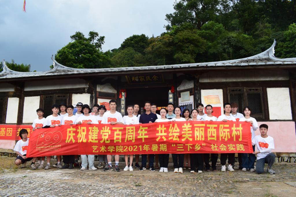 為響應(yīng)共青團(tuán)中央“文化、科技、衛(wèi)生”三下鄉(xiāng)的要求,引領(lǐng)廣大青年學(xué)生在社會課堂中受教育、長才干、作貢獻(xiàn),在觀察實踐中學(xué)黨史、強(qiáng)信念、跟黨走,閩南師范大學(xué)藝術(shù)學(xué)院2021年“三下鄉(xiāng)”暑期社會實踐隊在團(tuán)委副書記茅娜翔,輔導(dǎo)員李新航、莊培勛老師的帶領(lǐng)下于7月14日-18日前往三明市莘口鎮(zhèn)西際村開展“慶祝建黨百周年,共繪美麗西際村”村校共建主題社會實踐活動。