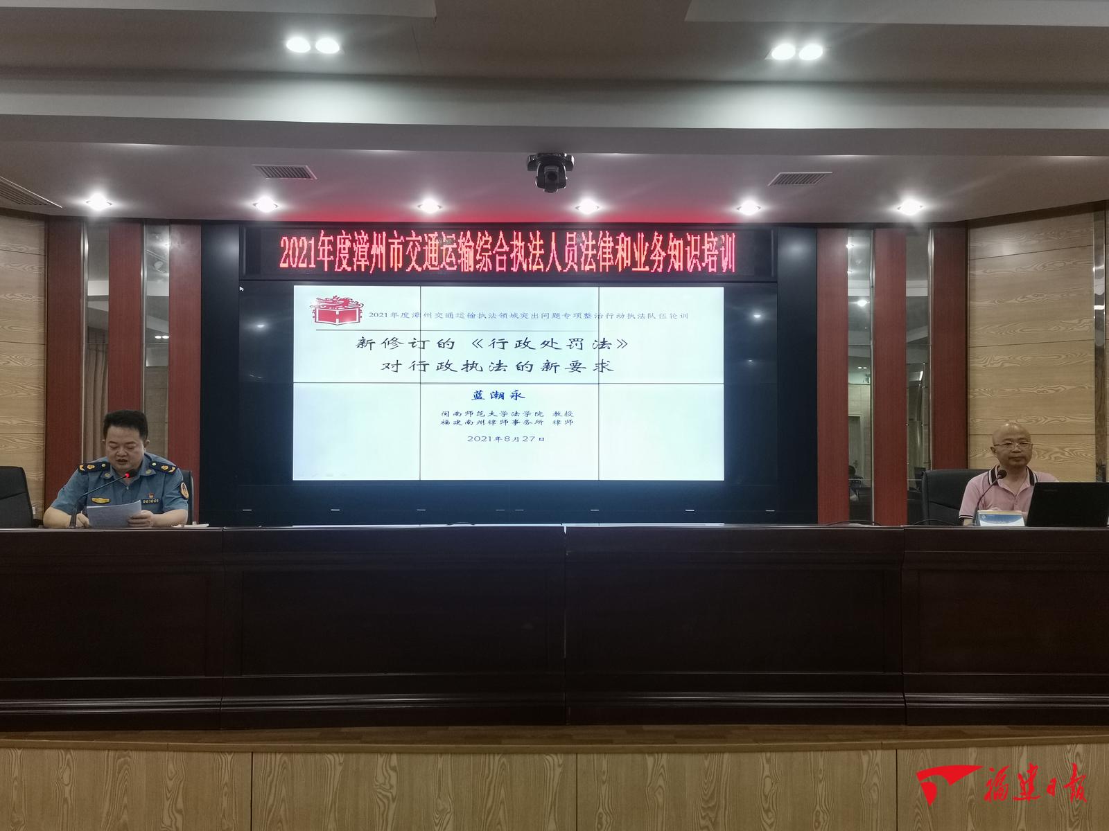 福建日報·新福建客戶端8月30日訊(記者 黃小英 通訊員 鄭曉珊)8月27日,漳州交通運輸整治辦開展交通運輸執法系統輪訓工作,結合黨史學習教育和交通運輸執法領域突出問題專項整治行動要求,對全市交通運輸執法人員進行法律和業務知識培訓。