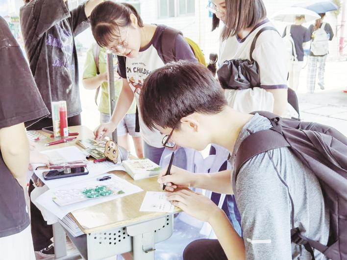 “老師辛苦了!”“祝您健康快樂!”“希望老師永遠美美噠!”活動現(xiàn)場,同學們熱情高漲,大家通過在定制明信片上一筆一畫,認真書寫對教師的誠摯祝福。有的同學還很用心地在寫下的文字后面,別出心裁地畫上笑臉、愛心等簡單的圖形,不失俏皮可愛。