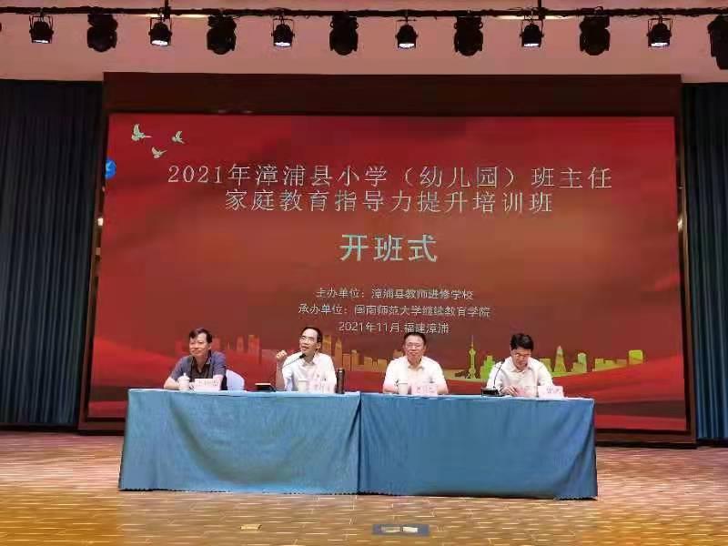 閩師大繼續(xù)教育學(xué)院院長曾天德出席開班式,并發(fā)表講話。他認(rèn)為此次培訓(xùn)活動正是對《中華人民共和國家庭教育促進(jìn)法》和“雙減”要求所做出的一項積極的具體回應(yīng),他為漳浦教育部門高度政治責(zé)任感和助力形成學(xué)校教育、家庭教育與社會教育合力的決心大加贊賞,希望參訓(xùn)學(xué)員珍惜學(xué)習(xí)機(jī)會,努力提升家庭教育方面的指導(dǎo)力,把自己塑造成為一名順應(yīng)教育新時代發(fā)展要求的家庭教育指導(dǎo)師,為家庭教育提供更多的指導(dǎo)、支持和服務(wù)。