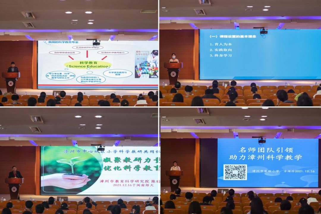 12月16日-17日,由福建省教育廳主辦、閩南師范大學(xué)承辦的“2021年福建省高校協(xié)同區(qū)域科學(xué)教育發(fā)展特色展示活動(dòng)”在漳州舉辦。活動(dòng)旨在全面貫徹習(xí)近平總書(shū)記“在科學(xué)家座談會(huì)上的講話”精神,落實(shí)中央“雙減”文件,提升我省科學(xué)教師的科學(xué)素養(yǎng)和教學(xué)能力,推進(jìn)生態(tài)文明與學(xué)校科學(xué)教育的深度融合,展示區(qū)域科學(xué)教育發(fā)展情況。省委教育工委、省教育廳一級(jí)巡視員李迅出席活動(dòng)并講話。