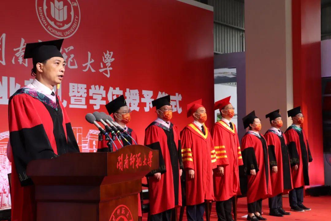 鳳凰花開、木棉飄絮,青春盛典、不負時光。6月20日上午,閩南師范大學2022屆學生畢業典禮暨學位授予儀式在球類館隆重舉行,并通過網絡同步進行直播。閩南師大黨委書記吳彬鏹、校長李順興、校學位評定委員會委員,學校各機關、教輔單位主要負責人,各學院黨政領導、畢業班輔導員等參加典禮。