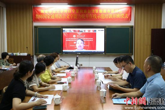 中新網福建新聞7月4日電(林小沛) 7月3日上午,閩南師范大學對口寧夏回族自治區固原市原州區教師國家通用語言文字能力提升培訓班開班式在閩南師范大學和寧夏固原市原州區教育體育局同步舉行。閩南師范大學黨委常委、副校長、國家語言文字推廣基地負責人張龍海教授出席開班式,閩南師范大學相關單位負責人,培訓項目團隊教師、志愿者,寧夏固原市原州區全體參訓學員共130余人參加開班式。開班式由閩南師范大學國家語言文字推廣基地辦公室主任肖模艷主持。