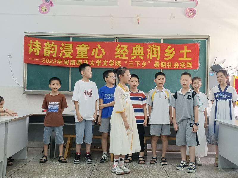 福建日報·新福建客戶端 7月14日訊(黃小樂)今年,閩南師范大學文學院積極申報教育部語用司主辦的2022年“推普助力鄉村振興”全國大中專學生暑期社會實踐志愿服務活動并成功入圍。實踐隊于7月8日至10日前往長泰巖溪鎮開展唐詩進校園、詩會進鄉村、鄉規民約調研等系列推普活動,助力鄉村振興。