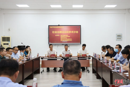 揭牌儀式后舉行“習近平法治思想研究之社會治理法治化”學術論壇。論壇由漳州市委政法委副書記、漳州市社會治理研究中心主任許育元主持。閩南師范大學法學院院長何東平教授在論壇上作主題發言。市中級人民法院、檢察院、公安局、司法局等單位與會人員共同交流社會治理經驗、共商市域社會治理策略。
