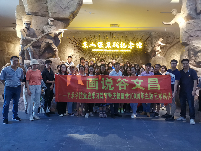 搭建“黨建+”第一課堂教學,豐富黨員教育內容。專業教師在課堂上通過深入挖掘美術、設計、音樂等藝術專業的思政元素,將紅色文化融入課程思政建設。學院黨委先后組織開展“筆繪初心”“唱響使命”“‘畫’說谷文昌”等一系列主題活動,組織 異地教學,前往東山谷文昌紀念館、“閩南井岡山”漳浦車本村等紅色教育基地開展黨史學習教育現場教學活動,在“潤物細無聲”中踐行課程思政。同時依托藝術考察、下鄉寫生等實踐課程,組織師生前往井岡山、龍巖古田會議舊址等紅色革命基地寫生創作。