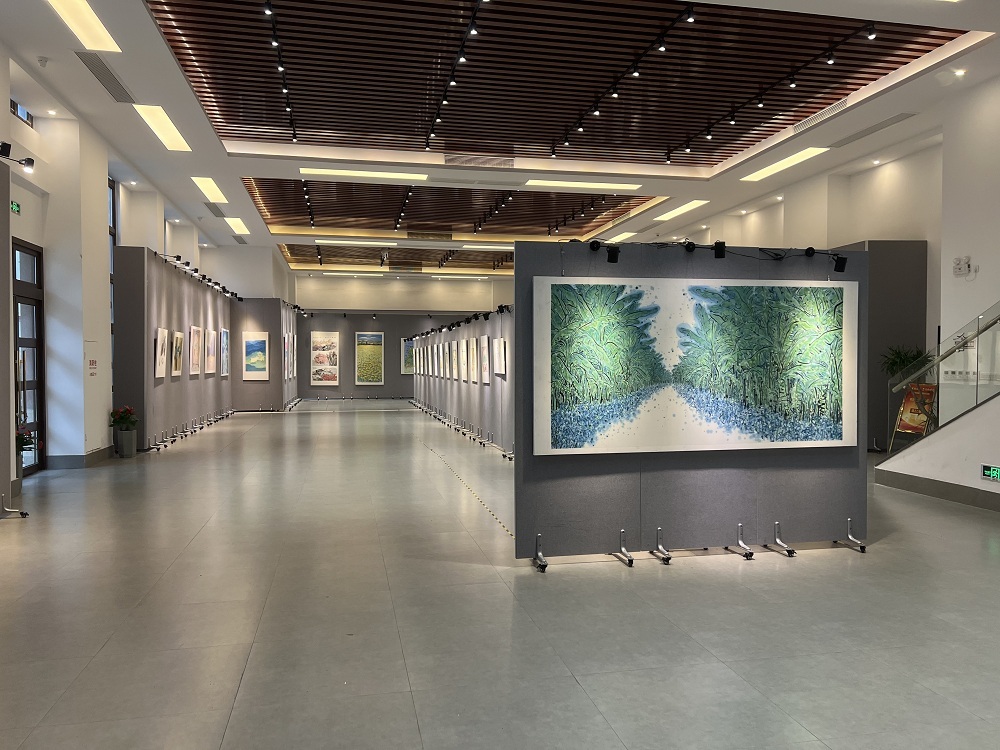 本次展覽共展出作品120余件,作品重點圍繞富美漳州、印象閩南、新農村建設、漳州風土人情等題材,既有描繪漳州美景的《春至瑞竹巖》《閩南水鄉》《涯上人家》,也有表現漳州特色的《水仙花》系列、《土樓印象》《香蕉海》等。一幅幅作品呈現了新時代新農村建設、漳州繁榮富美的新氣象。作品采用當代水墨創作手法,獨立思考,力求建構新的繪畫語言,將現代藝術主動介入繪畫中,保持藝術個性,探索不同藝術形態,探尋藝術多元化發展。藝術語言表達具有傳統文化內涵中的人文自然意象的綜合審美特質,區別于西方文化藝術以邏輯為主要思維特色的審美形式,強調個性化表達,融合時代發展因素,展現閩南風土人情及城鄉發展的恢弘圖景,反映出了中國當代水墨畫家踔厲奮發的精神面貌。同時,以藝為媒,進一步加強了漳州藝術家與國內藝術家的促進、交流。(陳木坤)