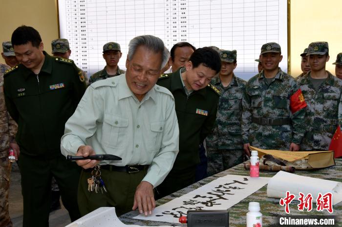 軍休文藝志愿服務隊書法隊員還在現場揮毫潑墨,“準新兵”們則在一旁為書法家牽紙、硯墨、選句……一句句激勵斗志的祝福躍然紙上,一幅幅俊秀飄逸的手書飽含著對即將踏入軍營的美好祝福。現場縈繞著濃濃的墨香和文化氣息,讓“準新兵”們剛入軍營就感受到濃厚的軍營文化氛圍。