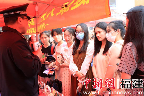 中新網(wǎng)福建新聞4月14日電(柯馨茹 劉婷婷 雷雪霞)“國(guó)家安全,人人有責(zé)。備豫不虞,為國(guó)常道。”13日下午,閩南師范大學(xué)師生匯集在達(dá)理活動(dòng)中心廣場(chǎng)前,專心致志地聽(tīng)著民警的科普,并在心中默默記下了國(guó)家安全知識(shí)。