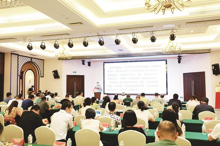 關帝文化學術研討會現場,專家學者作交流發言。本報記者 李 林 攝