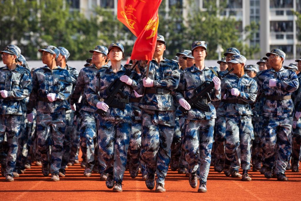 9月27日,閩南師范大學舉行2023級本科生軍訓總結表彰大會。圖為分列式檢閱。