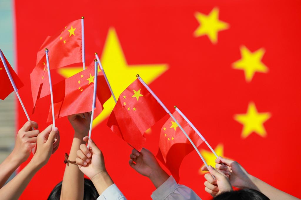 閩南師大學子與國旗同框(王艾嘉 攝)