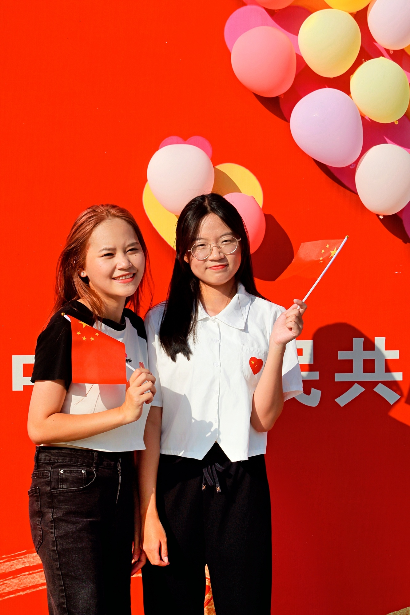 國慶節到來之際,閩南師范大學校園里各處紅旗招展,洋溢濃厚節日氛圍。閩南師大學子在校園里與國旗同框留影,用實際行動喜迎國慶。(董征 攝)