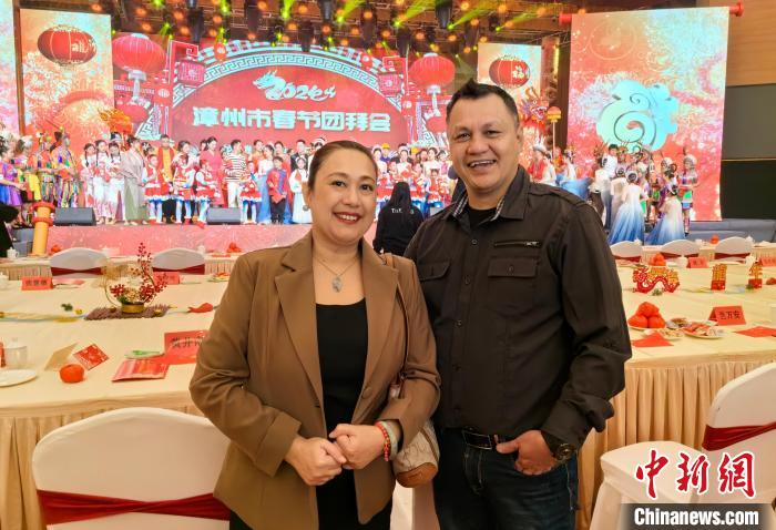 2月7日,安娜(左)作為外籍教師代表受邀參加2024年漳州市春節團拜會。中新網記者張金川攝