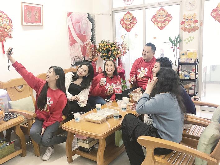 “叮咚……”伴隨著清脆的門鈴聲響起,安娜一家迎來了這個春節的第一波貴客——女兒嘉怡在閩南師大的3名同學,溫馨的“小窩”一下子鬧騰起來。燒水、泡茶……安娜像地道的漳州人一樣招呼客人,大家還一起動手準備“漳州味”年夜飯。包餃子、炸五香、切臘腸、蒸魚、炒韭菜豆腐……漳州傳統年夜菜一一上桌,翻滾的湯鍋里不時冒出各色菌菇,火鍋香氣四溢。“我最喜歡的是清蒸魚,漳州的朋友告訴我,魚代表年年有余。最有趣的是長輩都會給孩子包紅包,象征著美好的祝愿。”餐桌上,安娜當起了閩南文化的“傳播大使”,一邊熱情地招呼客人,一邊饒有興致地介紹著自己了解的漳州年俗。愛人、女兒和客人吃得津津有味、聽得興致勃勃。席間,大家時不時舉杯,互道新春祝福,并拿出手機拍下這喜慶祥和的圍爐畫面。