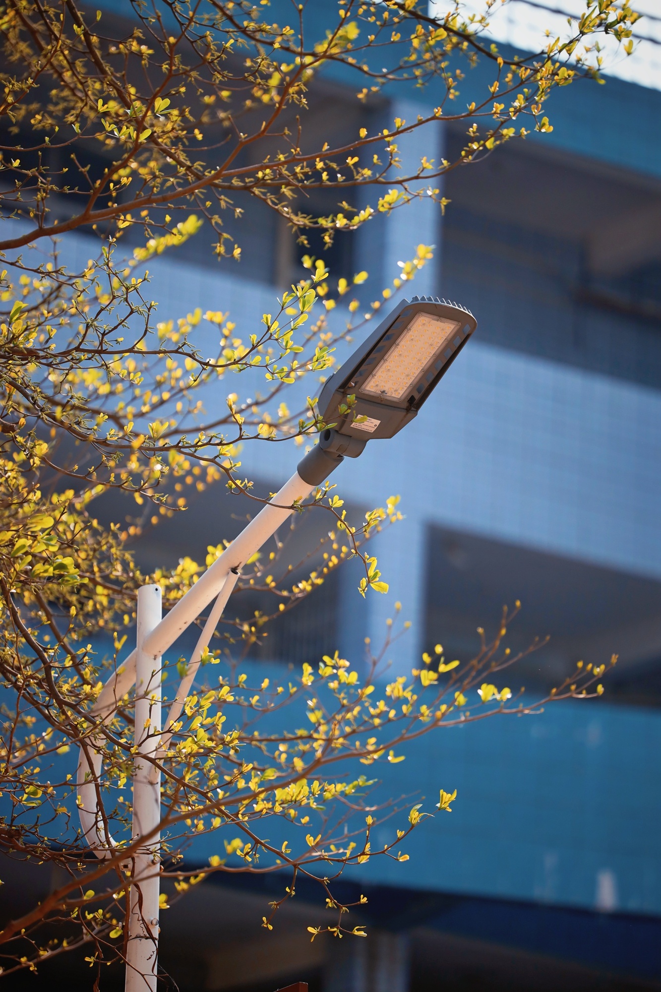 春天路過黃昏的圖書館。