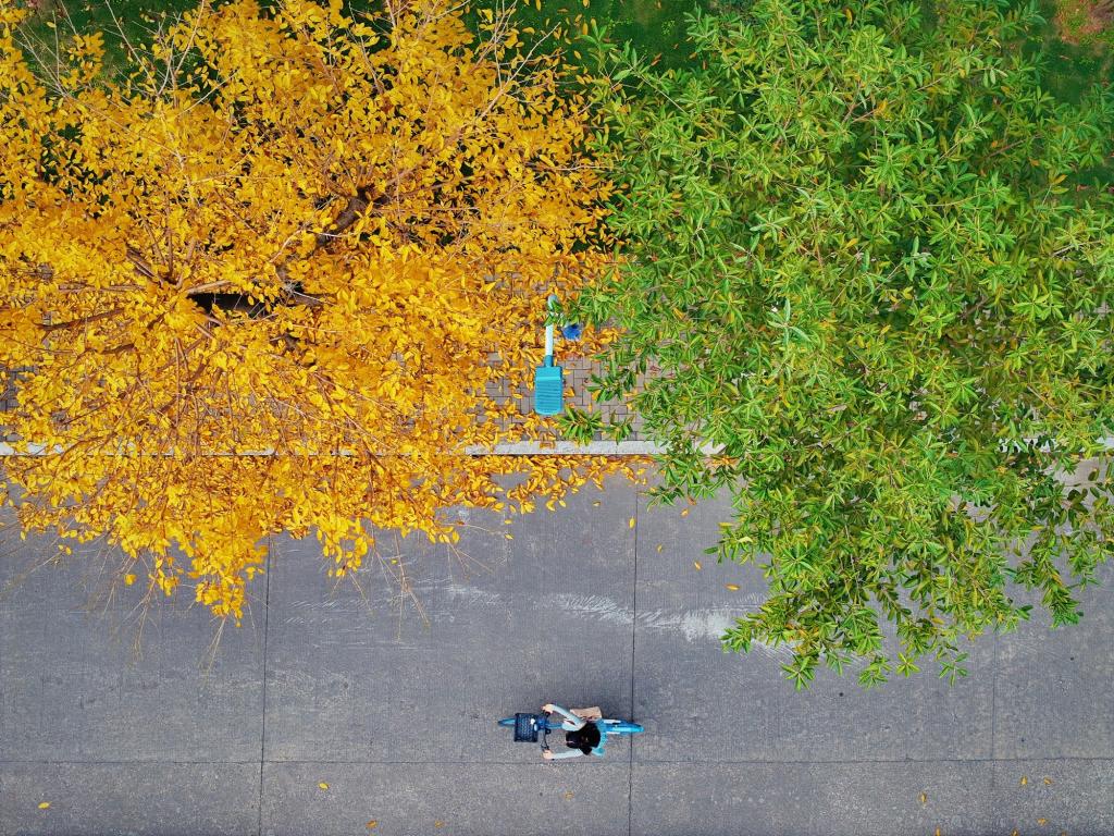 南方校園里,落葉飄零的春天。