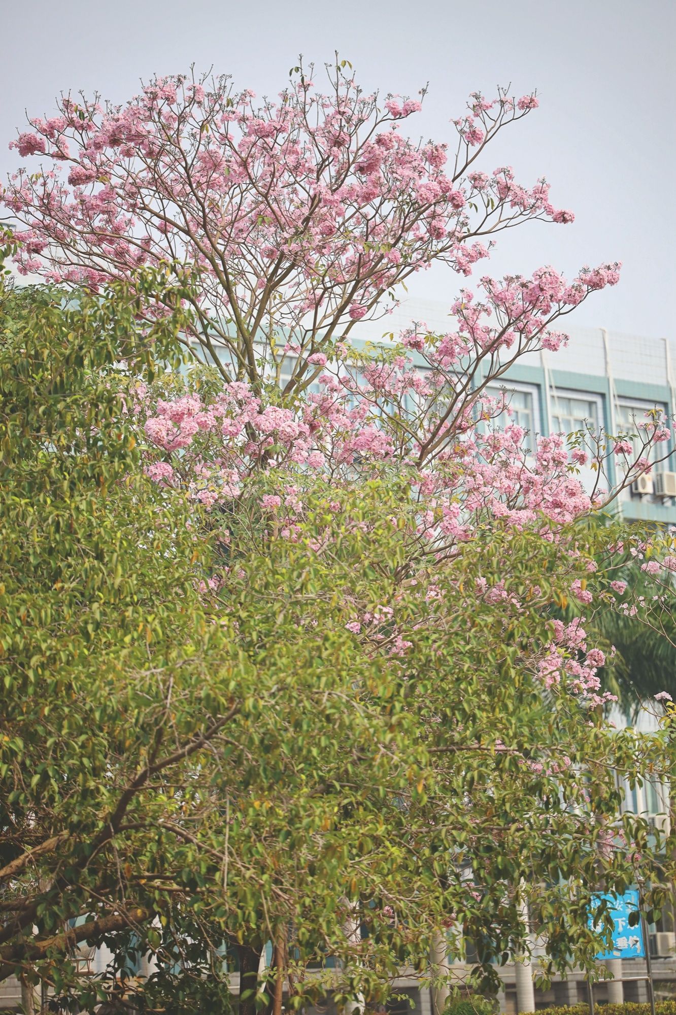 鉆石廣場上,粉色風(fēng)鈴木在悄悄向上生長,尋找春天的太陽