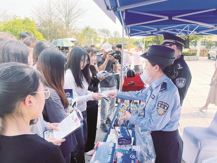 本報訊(記者 李潤 通訊員 盧雅玲 文/供圖)4月11日,在第九個全民國家安全教育日來臨之際,為推動《國家安全法》普法宣傳教育工作廣泛開展,薌城禁毒辦攜手薌城公安分局禁毒大隊、薌城公安分局國保大隊、薌城反詐中心等單位在閩南師范大學舉辦以“總體國家安全觀,創新引領十周年”為主題的宣傳活動。