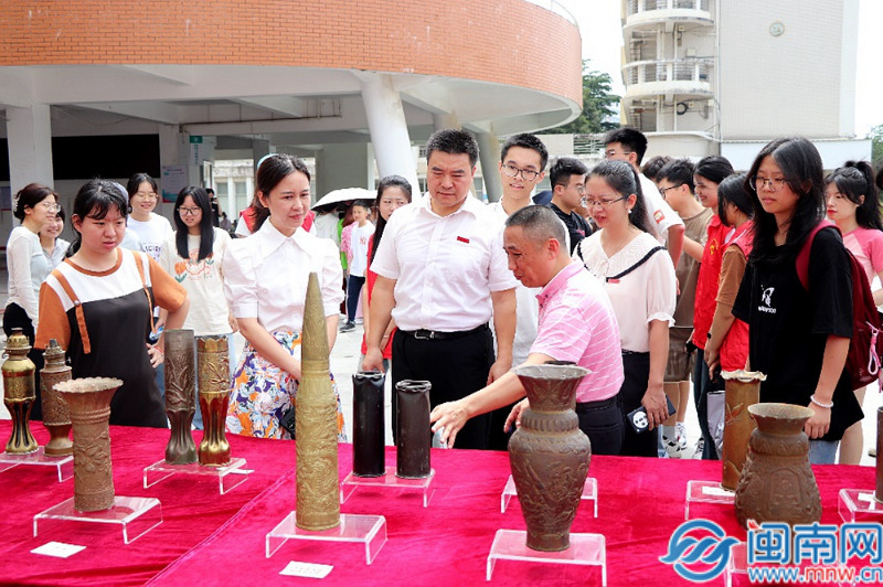 閩南網6月11日訊(通訊員 朱洪平 張豪顯 閩南網記者 周怡楠 文/圖)為慶祝中華人民共和國成立75周年和第17個國際檔案日,近日,閩南師范大學歷史地理學院、檔案館聯合舉辦“彈殼銘歷史,藝繪和平圖”——世界炮彈殼藝術主題展。