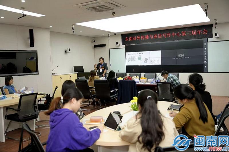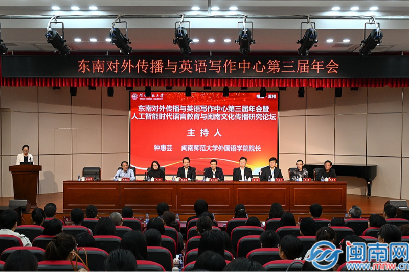 閩南網11月28日訊(通訊員 莊苑珺 董征 閩南網記者 周怡楠 文/圖)11月23日,“東南對外傳播與英語寫作中心第三屆年會暨人工智能時代語言教育與閩南文化傳播研究論壇”在閩南師范大學舉行。閩南師大黨委常委、副校長張龍海,漳州市政協副主席蔡興州、上海外語教育出版社副總編輯張宏出席開幕式并致辭。來自山東大學、福州大學、內蒙古大學、集美大學、哈爾濱商業大學、閩南師范大學等省內外高校的120余位專家學者參會。