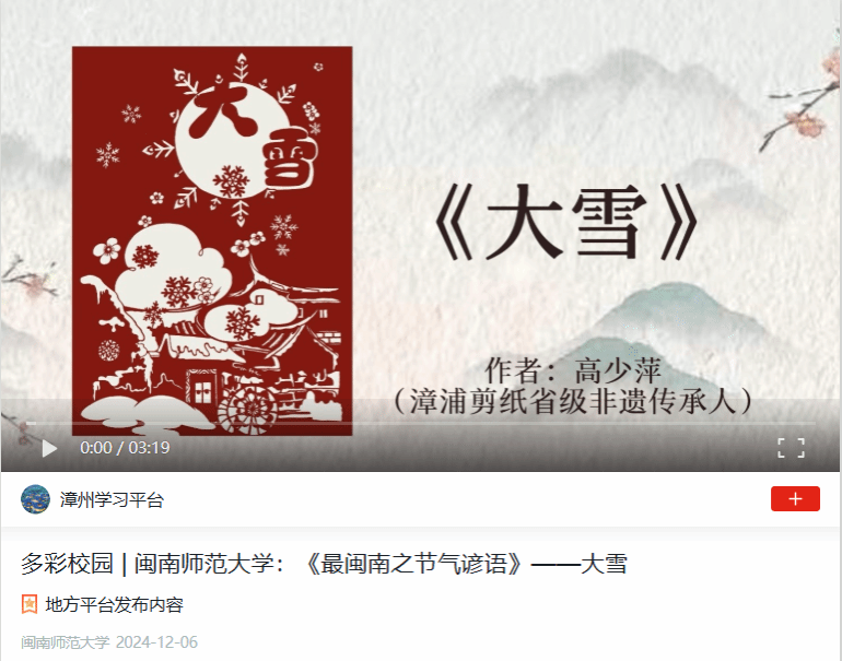 https://article.xuexi.cn/articles/index.html?art_id=8400587976487209808&showmenu=false&t=1733448540307&study_style_id=video_default&cdn=https%3A%2F%2Fregion-fujian-resource&source=share&share_to=wx_feed&ptype=-1&item_id=8400587976487209808&ref_read_id=3212d1b0-b22e-4231-a5a2-36dda37adc9c_1733451470143