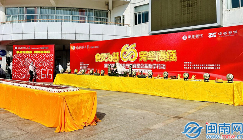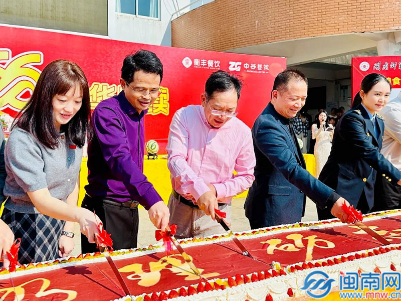 活動伊始,閩南師范大學黨委常委、副校長何紹福在“節(jié)約糧食 反食品浪費 我在行動”簽字墻上簽名,為美食節(jié)拉開序幕。隨后,何紹福與嘉賓共同切開長達6.6米的66周年校慶大蛋糕。