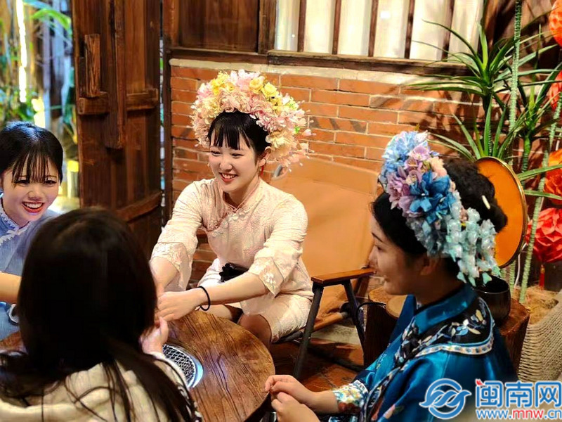 活動中,中日高校青年來到漳州古城體驗非遺簪花。頭戴簪花的日本學子漫步漳州古城,穿梭于老騎樓與舊牌坊之間,指尖拂過古城、古厝的墻面紋理,仿佛觸碰到了遣唐使船與月港商帆的時代年輪,感受到漳州“大航海”文化,體會到“海上絲綢之路”波瀾壯闊、橫跨萬里的航海圖景。日本學生米津小智不禁感嘆道:“好漂亮,能親身體驗中華文化真的太幸運了,我要多拍一些照片回去。”