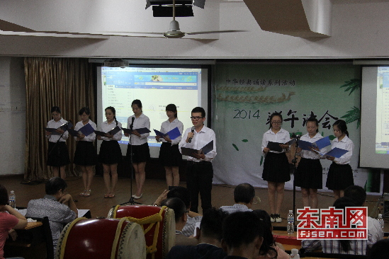 東南網5月30日訊(見習記者 黃文星)傳承文化,延續經典,2014年中華經典誦讀系列活動之端午詩會于29日晚七時三十分在閩南師范大學成功舉辦。詩會以吟詩誦詞的傳統形式緬懷屈原,紀念端午。