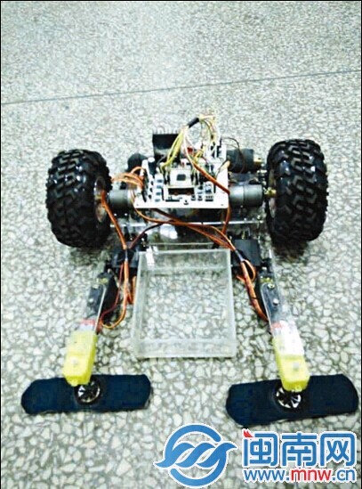 海都訊 “看媽媽平時拖地用拖把,還要擰干,很辛苦,所以才想發明一臺自動洗地機。”說這話的莊培強,是閩南師范大學物理與信息工程學院的學生,他和羅力榕、施金才隊伍設計的“智能兩輪洗地機”因設計貼近生活、解決了實際問題,在2014年福建省大學生合泰杯單片機應用設計競賽中獲得二等獎。這個賽事,也是省內單片機類最高級別賽事。