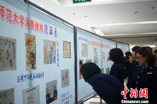 大學生正在參觀閩南師范大學消費維權漫畫展。 王欣 攝