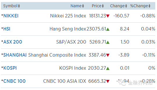中國上證指數微跌0.1個百分點,CSI300指數收盤持平,深成指小幅上攻0.1個百分點,香港恒生指數微跌0.2個百分點。