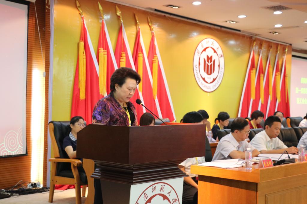 校黨委書記吳彬鏹在會上講話。吳彬鏹表示,會議期間,代表們以高度的政治責任感、歷史使命感和主人翁精神,認真履行職責、積極建言獻策,進一步統一了思想,形成了共識,增強了合力,充分展示了胸懷全局、心系發展的責任擔當及奮發向上、團結進取的精神面貌。他強調,全校師生要堅持以新閩師建設目標引領新發展、堅持以深化綜合改革推動新發展、堅持以奮力沖刺博士學位授權單位贏得新發展、堅持以新時代實干擔當的優良作風保障新發展。要在習近平新時代中國特色社會主義思想指引下,振奮精神,堅定信心,搶抓機遇,攻堅克難,全面加快改革發展步伐,同心協力建設“新閩師”。他希望新一屆教代會執委會和工會委員會牢固樹立“四個意識”,增強“四個自信”,牢牢把握教代會、工會工作正確的政治方向,充分發揮橋梁紐帶和促進民主管理的作用,圍繞中心、服務大局,加強自身建設,認真履職盡責,提高服務水平,努力建設教職工滿意信賴的“職工之家”;希望各位代表充分發揮代表性和先進性,廣泛深入聯系師生群眾,率先垂范做好本職工作,團結和動員廣大教職員工振奮精神、開拓創新、擔當作為,同心協力為學校改革發展做出新貢獻。