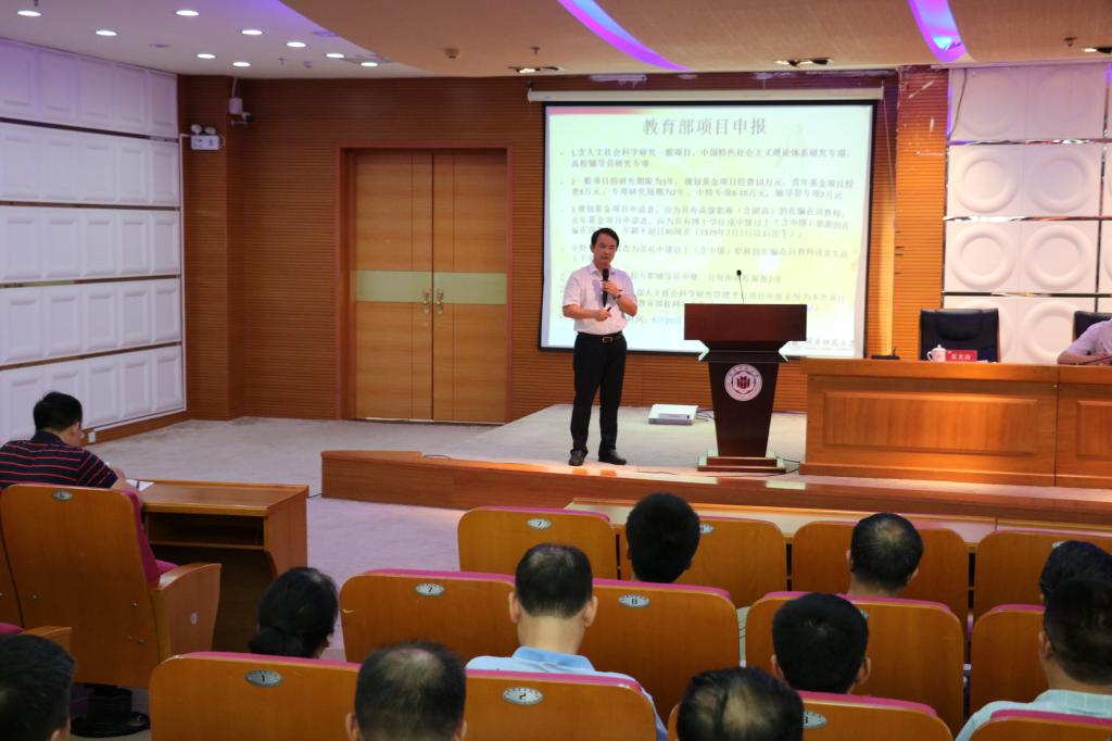 29日上午,會議對新學期工作做了部署。校黨委常委、副校長張龍海首先在會上作了教育部科研項目申報動員。張龍海指出,2019年我校國家自然資金、國家社科基金項目均取得了新突破,但仍需持續發力。各二級學院要認真組織,積極動員,主動服務,科學謀劃,做好保障服務工作,為教師創造良好的科研環境,力爭在教育部科研項目申報中再創佳績。