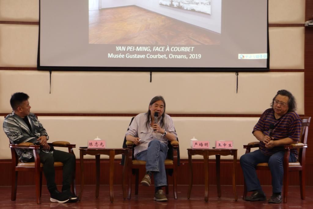 11月14日,著名歐洲當代藝術(shù)家嚴培明蒞臨我校參加藝術(shù)學院舉辦的“時代·新潮——當代油畫創(chuàng)作風格與內(nèi)涵表現(xiàn)”主題論壇。著名當代藝術(shù)家、中國雕塑學會常務理事陳志光,國家一級美術(shù)師、著名油畫家王申生作為嘉賓,與嚴培明一起暢談藝術(shù)與人生、藝術(shù)創(chuàng)作經(jīng)歷與思考、藝術(shù)展覽感悟。校黨委書記吳彬鏹出席論壇,我校藝術(shù)學院的師生以及四川美院、西安美院、魯迅藝術(shù)學院等高校的師生和校內(nèi)外的藝術(shù)愛好者200余人參加了論壇。