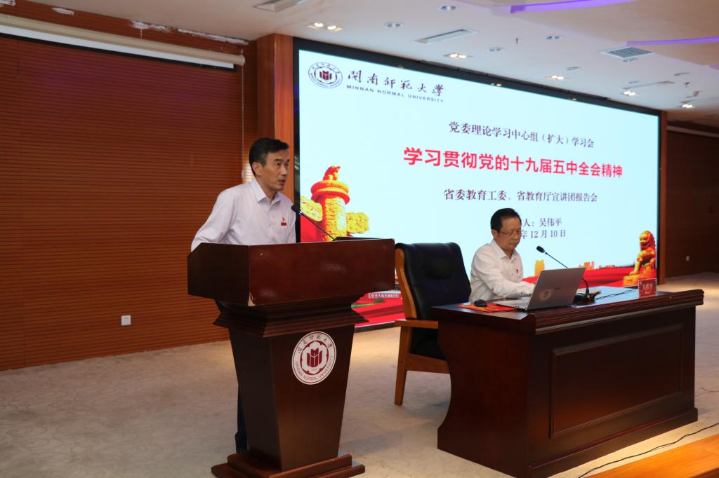 省委教育工委委員,省教育廳黨組成員、副廳長吳偉平宣講黨的十九屆五中全會精神