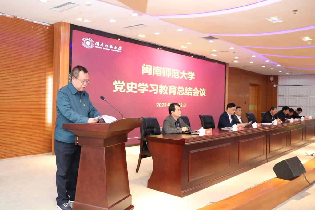 1月13日下午,我校在逸夫圖書館五樓報告廳召開黨史學習教育總結會議。省教育系統黨史學習教育巡回指導三組組長賴虹凱,指導組成員王志煌、張春、胡嘯塵到會指導。校黨委書記、黨史學習教育領導小組組長吳彬鏹作黨史學習教育總結報告,校黨委副書記、校長、黨史學習教育領導小組副組長李順興主持會議。校領導鐘發亮、肖慶偉、何紹福、張龍海、戴??党鱿瘯h。