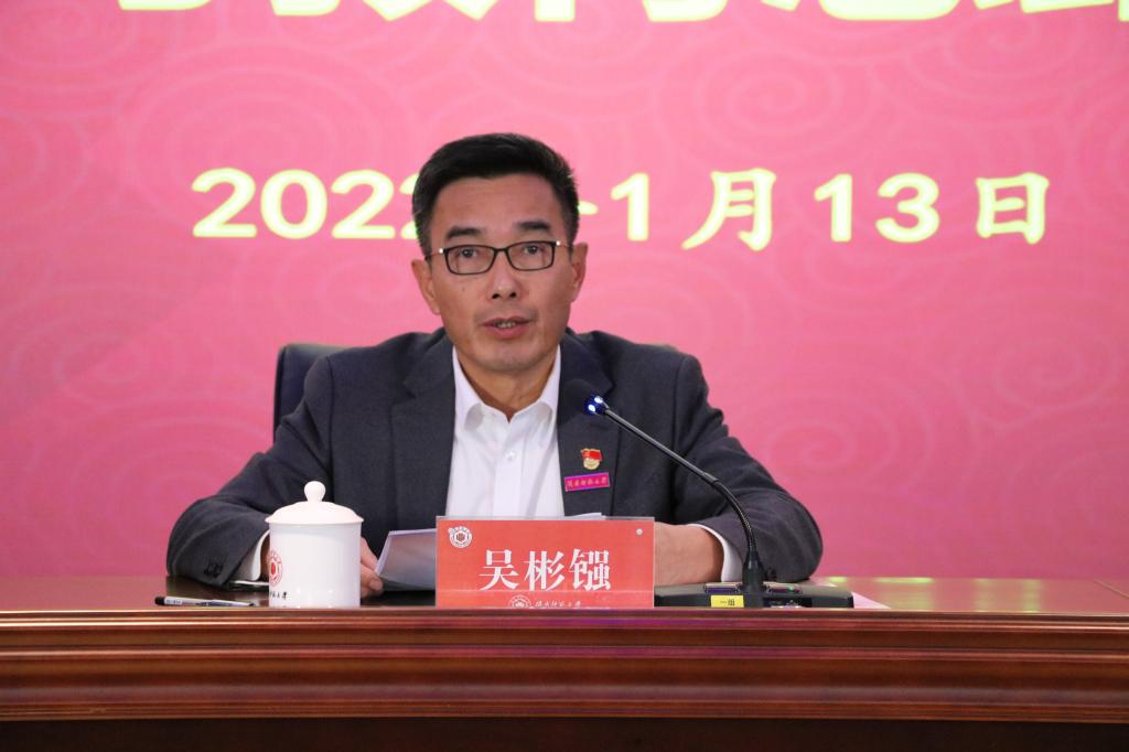吳彬鏹在講話中指出,黨史學習教育開展以來,學校黨委認真貫徹黨中央和省委決策部署,在省教育系統黨史學習教育巡回指導三組的精心指導下,結合高校立德樹人實際,周密謀劃部署,扎實開展黨史學習教育,做到理論武裝入腦入心、宣傳宣講出新出彩、學習教育見行見效、“我為群眾辦實事”實踐活動走深走實,黨史學習教育取得扎實成效。一年來,學校著力強化政治責任,堅持高站位謀劃、高標準落實,工作推進“有力度”;著力加強思想引領,堅持領導干部帶頭學、專題培訓深入學、融入課堂實踐學、研討交流貫徹學,學習研討“有熱度”;著力突出主題主線,通過校內外專家學者講黨史、思政課教師談黨史、朋輩青年話黨史,宣傳宣講“有深度”;著力凸顯學校特色,用好地方紅色資源、打造精品校園文化、開辟黨史學習“新陣地”,主題活動“有亮度”;著力做到知行合一,深入調研找準問題、多措并舉辦好實事、服務社會彰顯擔當,服務師生“有溫度”;著力推動事業發展,黨建思政工作取得新成效、學科發展取得重大突破、人才培養質量得到新提升、特色辦學喜結新碩果,開創新局“有效度”。