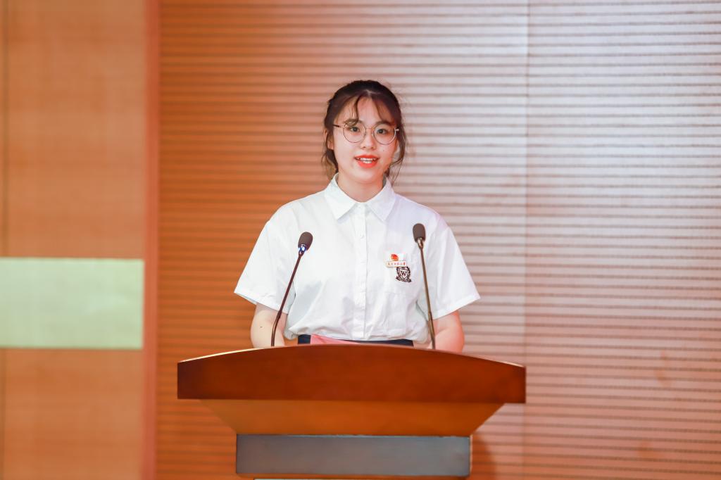 2021年度福建省優(yōu)秀共青團(tuán)員、教育科學(xué)學(xué)院許悅同學(xué)作為獲獎學(xué)生代表發(fā)言。她表示,在共青團(tuán)新的百年征程開啟之際,我校青年學(xué)子應(yīng)自覺用習(xí)近平新時代中國特色社會主義思想武裝頭腦,做具有遠(yuǎn)大理想和堅定信念的愛國者、奉獻(xiàn)者、奮進(jìn)者,努力成長為堪當(dāng)民族復(fù)興重任的時代新人。