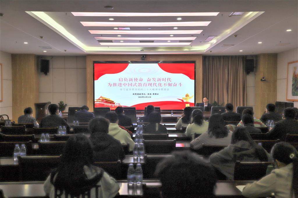 12月12日下午,校黨委副書記、校長李順興在科技樓1607會議室為學校師生作學習宣傳貫徹黨的二十大精神專題報告。學校各學科帶頭人,學科建設與研究生工作處、科研處、教務處、人事處等單位負責人,教務處黨支部黨員,各學院學生代表等聆聽報告。