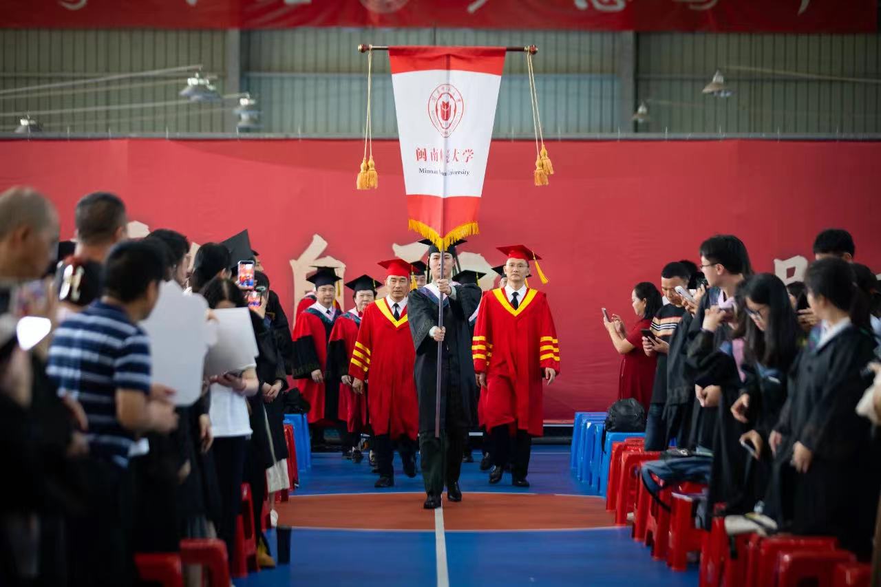 6月21日上午,閩南師范大學(xué)2023屆畢業(yè)典禮暨學(xué)位授予儀式在球類(lèi)館隆重舉行,并進(jìn)行網(wǎng)絡(luò)直播。校領(lǐng)導(dǎo)吳彬鏹、李順興、肖慶偉、何紹福、蔣一婷、林致遠(yuǎn)、張龍海、戴福康,校學(xué)位評(píng)定委員會(huì)委員,學(xué)校各機(jī)關(guān)、教輔單位主要負(fù)責(zé)人,各學(xué)院黨政領(lǐng)導(dǎo)、畢業(yè)班輔導(dǎo)員、部分學(xué)生家長(zhǎng)及3200多名畢業(yè)生參加典禮,畢業(yè)典禮由校黨委常委、副校長(zhǎng)林致遠(yuǎn)主持。