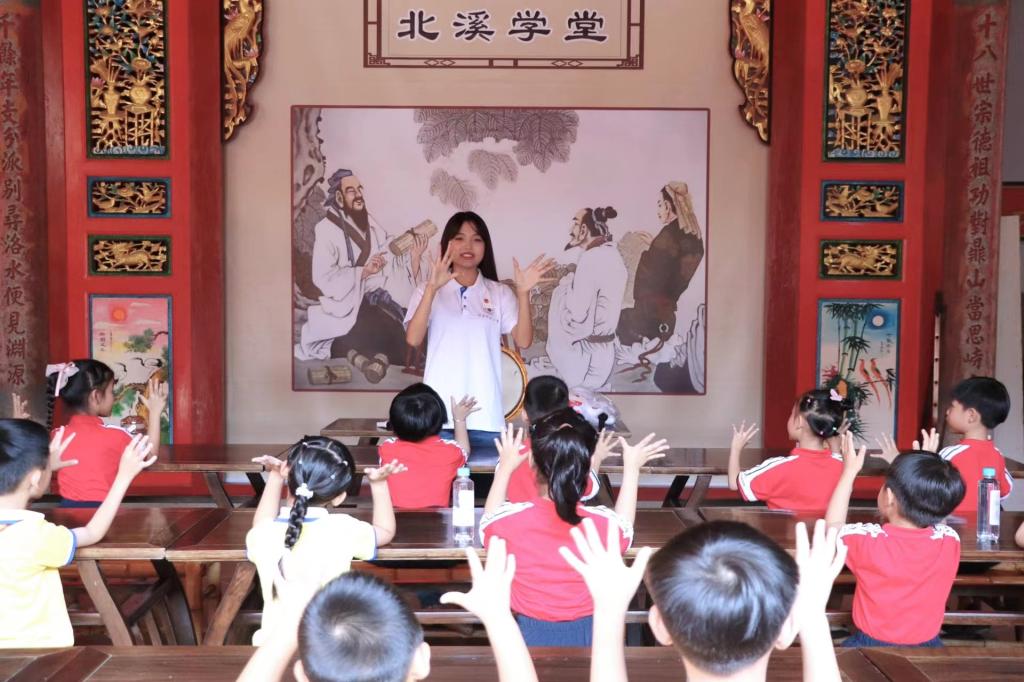 在龍文區郭坑鎮洛濱村,校領導詳細了解校團委“青聽鄉音·尋跡郭坑”社會實踐隊師生學習、工作、生活情況,現場指導實踐隊在北溪學堂開展“開筆禮”國學夏令營活動,與隊員們進行深入交流。