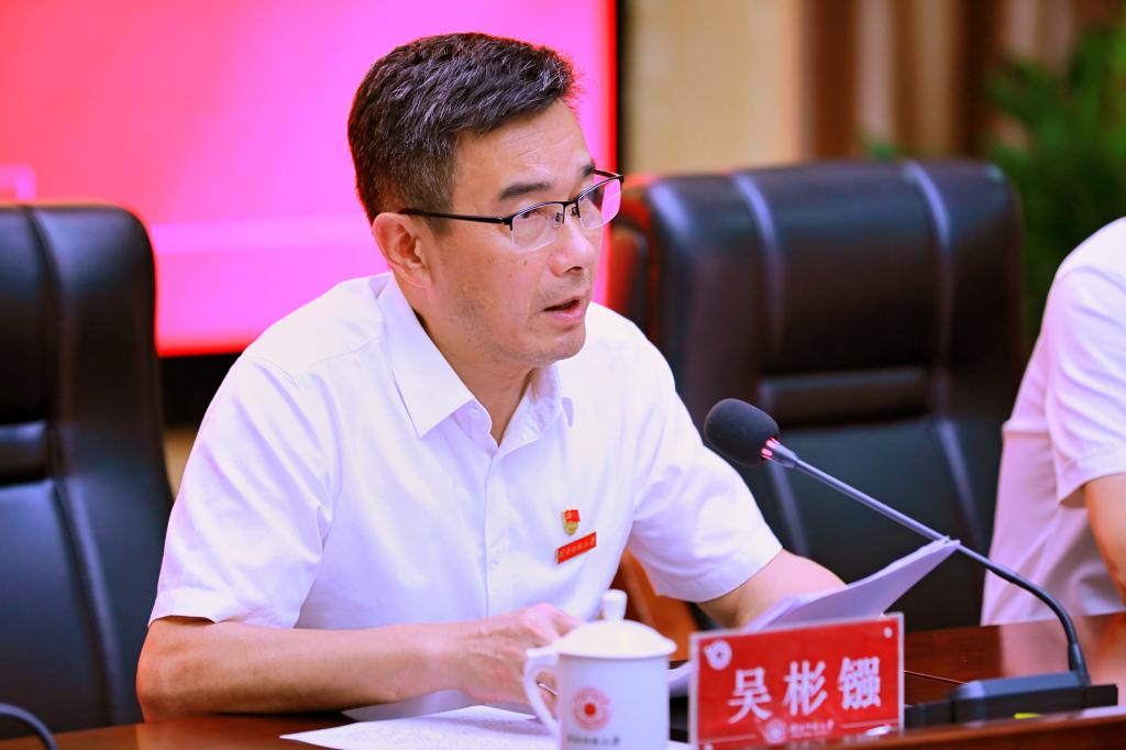 校黨委書記、主題教育領導小組組長吳彬鏹作主題教育總結講話