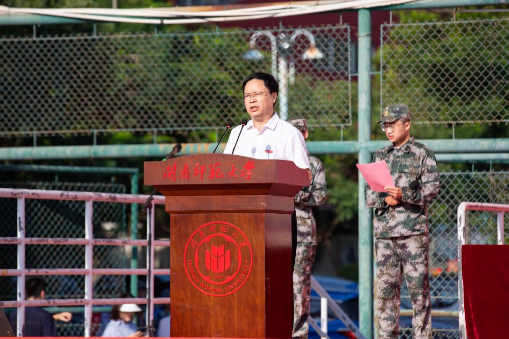李順興在大會上講話。他表示,本次軍訓時間長、任務重,同學們圓滿完成既定訓練任務,表現出了堅韌頑強的拼搏精神,繼承了學校“艱苦奮斗、自強不息、攻堅克難、敢拼會贏”的辦學傳統。他勉勵新生要持續樹牢強國有我的信念,在至誠報國中堆砌人生高度。保持在軍訓中展現出來的奮斗姿態,文明精神、野蠻體魄、強大自己,以社會主義核心價值觀構筑自己的精神支柱。要持續激揚青春澎湃的斗志,在攻堅克難中堅守人生航向。深刻領悟學校“為黨育才、為國分憂、為家導航”的辦學核心價值,以堅忍不拔的恒心扎根專業知識,打牢實現目標的基礎,把握個人發展主動權。要持續錘煉沉著堅韌的秉性,在求學探知中實現人生價值。勤奮學習,完善自身,用青春、智慧和汗水撐起國家希望和民族未來,在實現中華民族偉大復興的中國夢的生動實踐中作出新的貢獻。