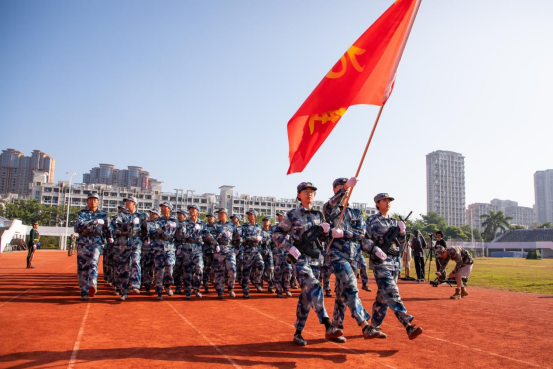 軍訓總結表彰大會進行了現場直播,約有1.2萬名觀眾同步收看。本次軍訓為期三周,安排了隊列訓練、內務整理、擒拿格斗、綜合演練、軍體拳、匕首操、新生思想政治教育課、優秀學生事跡宣講、越野拉練、素質拓展、露天觀影、應急演練、安全教育等一系列活動。